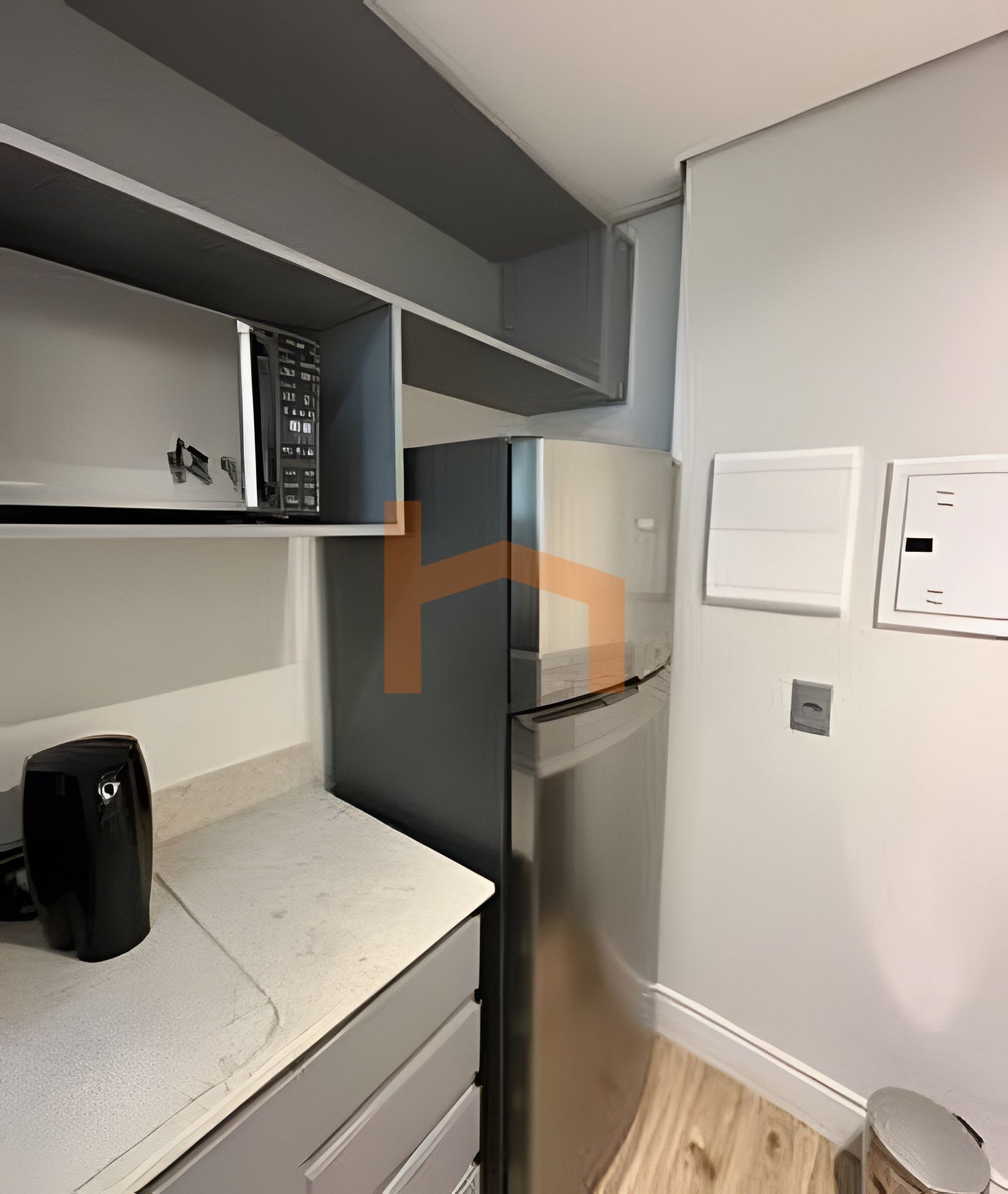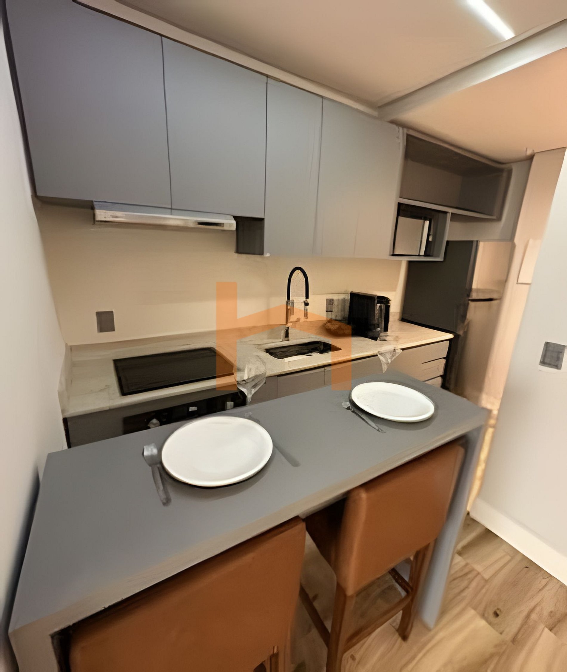 A área social integra sala de estar e jantar, criando um ambiente acolhedor para relaxar ou receber. A cozinha completa e equipada traz praticidade para o dia a dia.